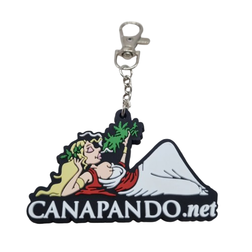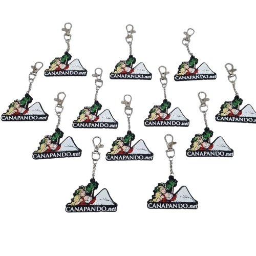 Portachiavi in PVC con forma personalizzata Canapando, con stampa a rilievo. Portachiavi a moschettone.